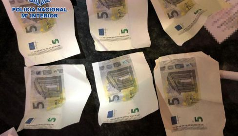 Las investigaciones policiales permitieron conocer que cientos de billetes falsificados por el detenido habían sido distribuidos por Andalucía, especialmente por la provincia de Granada. Tras obtener todos los datos necesarios, los agentes realizaron el registro de su vivienda donde e intervinieron un total de seis billetes de cinco euros impresos por las dos caras pendientes de cortar, recortes de billetes impresos correspondientes a unos 30 billetes más y material para la impresión de aproximadamente otros 1.000 billetes de cinco euros, que se encontraban en proceso de producción.