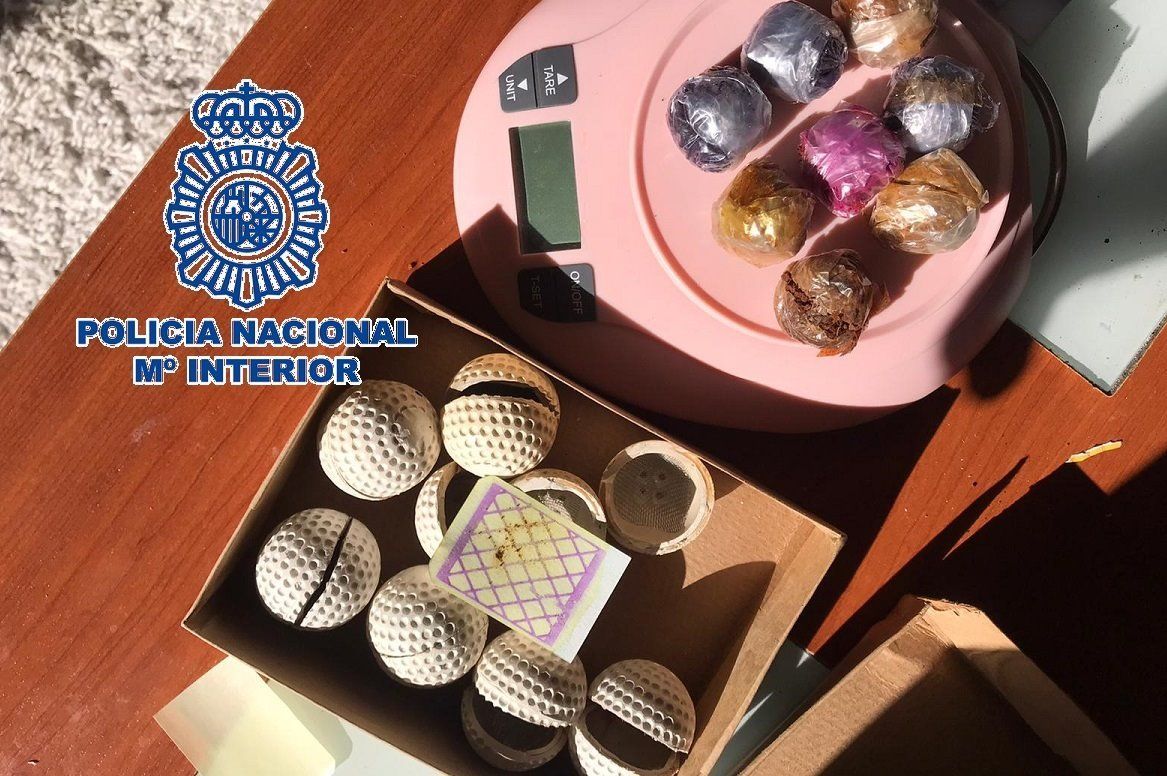 Agentes de la Policía Nacional han intervenido 85 gramos de heroína camuflada en pelotas de golf en un registro en el domicilio en Benalmádena (Málaga) de un investigado por tráfico de drogas. Dos hombres han sido detenidos en el transcurso de la investigación.