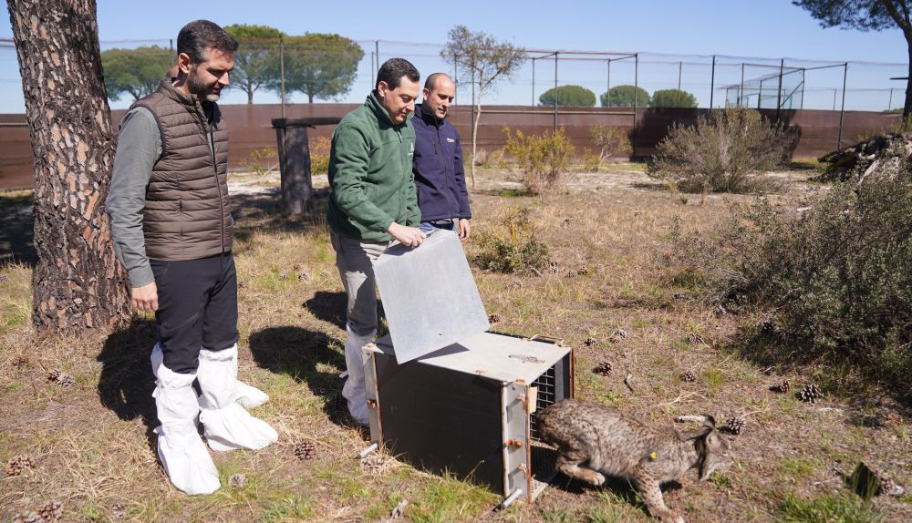 El presidente de la Junta, Juanma Moreno, ha participado en el Parque Nacional de Doñana en la suelta de Dama, una hembra lince nacida el 23 de marzo de 2007 en El Acebuche y procedente del programa de cría en cautividad. Allí, ha afirmado que este Parque es una joya y emblema del firme compromiso del Gobierno andaluz con el medioambiente y su sostenibilidad. "Doñana es una referencia dentro de esa red importante y potente de protección a la naturaleza y a la biodiversidad que tenemos en Andalucía", ha apuntado.