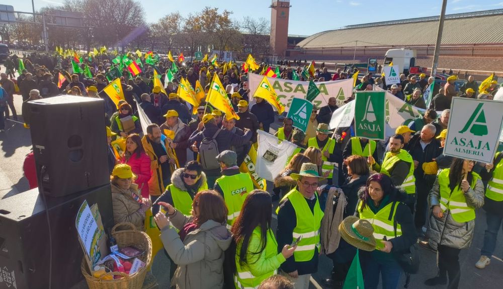 Cientos de agricultores andaluces se han sumado este lunes a la protesta convocada por Asaja y suscrita por COAG frente al Ministerio de Agricultura por el tratado comercial firmado entre la Unión Europea y Mercosur. La concentración también va dirigida a Luis Planas ya que la asociación de agricultores considera que es uno de "los máximos defensores de un acuerdo desfasado, problemático y desequilibrado que, de ratificarse, tendrá unas consecuencias tremendamente negativas para todo el sector agropecuario europeo".