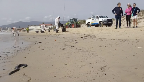 El alcalde también ha informado de que desde primera hora de este jueves se viene trabajando en las labores de retirada de las 'galletas' de fuel que debido a las condiciones meteorológicas están apareciendo en la costa.