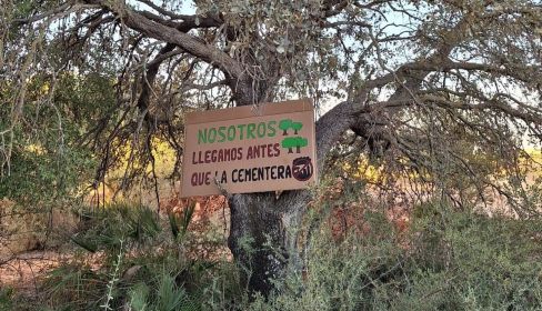 Para concienicar de ello, los activistas han instalado diversos carteles con lemas reivindicativos, en defensa de la conservación de este espacio natural.