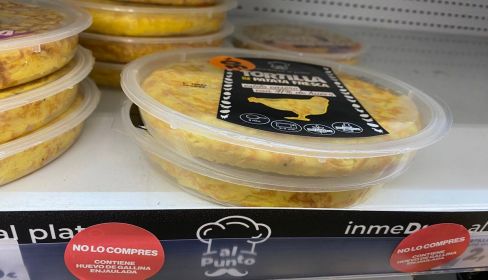 Con el lema No lo compres, contiene huevo de gallina enjaulada, activistas han exigido en diferentes puntos de la red de Dia en España el fin del uso de huevos de gallinas enjauladas en la composición de productos de la propia cadena, como tortillas de patata, postres, bollería o salsas.