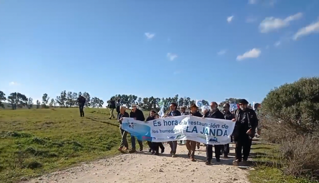 Cientos de ecologistas de diferentes asociaciones se han dado cita este sábado 4 de febrero entre Barbate y Vejer para realizar un marcha en defensa de la recuperación de los humedales de la Janda. En ella se ha solicitado que la Juntade Andalucía y el Gobierno de España cumplan con su obligación de defender, recuperar y restaurar estos terrenos de dominio público actualmente cultivados por empresas privadas sin contar con concesión administrativa para ello.