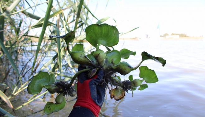 Los agentes comprobaron que el tramo de cauce afectado tiene una longitud aproximada de unos 700 metros lineales, una superficie de unos 7.500 metros cuadrados, "si bien la planta localizada no era camalote, lo que supone un alivio, sí es alóctona", por lo que se procedió a realizar una toma de muestras de varios especímenes.