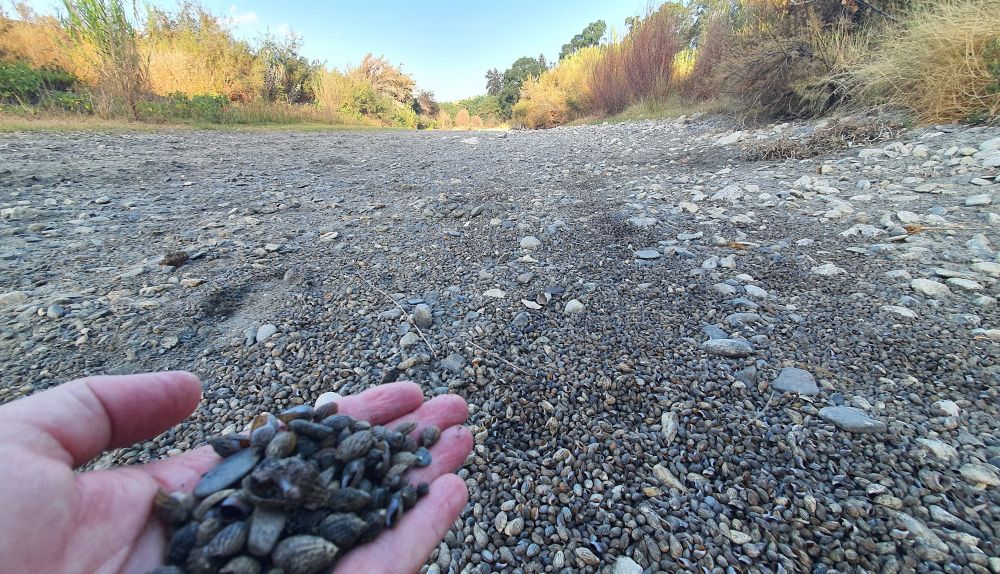 También la falta de caudal ha afectado a los mejillones de agua dulce o náyades, (Unio spp) moluscos bivalvos de agua dulce que encuentran en este río sus poblaciones muy reducidas y localizadas, que por su falta de movilidad y crecimiento lento son de difícil recuperación.