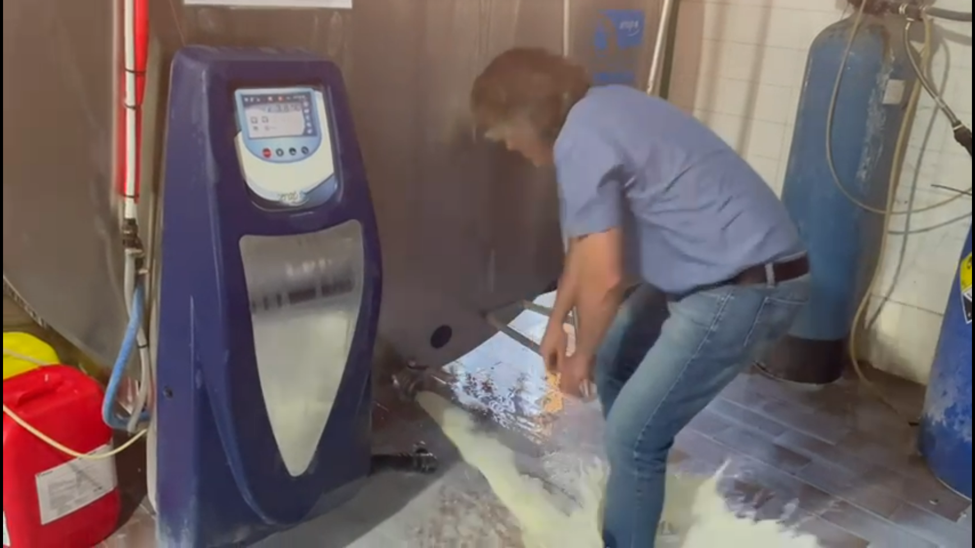 "Desgraciadamente voy a tener que tirar mi leche porque Puleva no quiere recogerla. No quiere recogerla porque nos obliga a firmar un contrato para arruinar completamente al sector de Andalucía y antes que arruinarnos preferimos tirar nuestra leche", afirma el ganadero Antonio Casa.