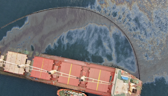 "Los buzos que se encuentran en el lugar de los hechos han podido restablecer los sellos, por lo que la GPA está en proceso de detener la salida de petróleo por los respiraderos. La formación en forma de J de la Autoridad Portuaria de Gibraltar y Salvamento Marítimo Luz de Mar se encuentran en las cercanías del buque recogiendo el petróleo que flota a la deriva. Actualmente se están desplegando skimmers para empezar a recoger lo que hay dentro de la barrera".