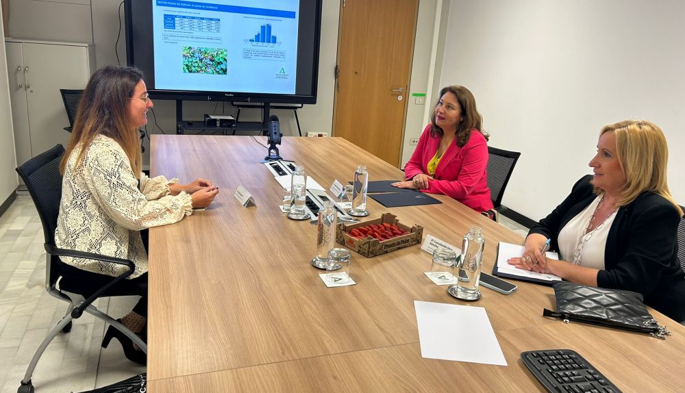 Durante los encuentros de trabajo, la consejera de Agricultura, que ha estado acompañada por la secretaria general de Agricultura, Ganadería y Alimentación de la Consejería de Agricultura, Pesca, Agua y Desarrollo Rural, Consolación Vera, ha detallado los datos oficiales que constatan que la producción onubense de fresa y otros frutos rojos es sostenible desde un punto de vista social, medioambiental e hídrico. En este sentido, Crespo ha recordado que más del 90% de los productores exportadores de fresa y frutos rojos onubenses cuentan con la certificación GlobalG.A.P. Spring, que certifica, entre otros aspectos, un uso sostenible del agua. Asimismo, la consejera ha explicado “el uso eficiente del agua que están realizando los agricultores onubenses mediante la aplicación de nuevos sistemas y el Big Data, logrando un ahorro de agua de hasta un 40% en sus fincas”.