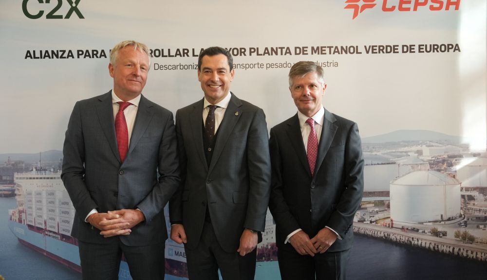 El presidente de la Junta de Andalucía, Juanma Moreno, ha estado este miércoles en Huelva junto a directivos de Cepsa y C2X de Maersk para presentar lo que será la mayor planta de metanol verde de Europa. Moreno ha manifestado que Andalucía está dispuesta a capitanear la revolución energética como un gran instrumento de transformación.