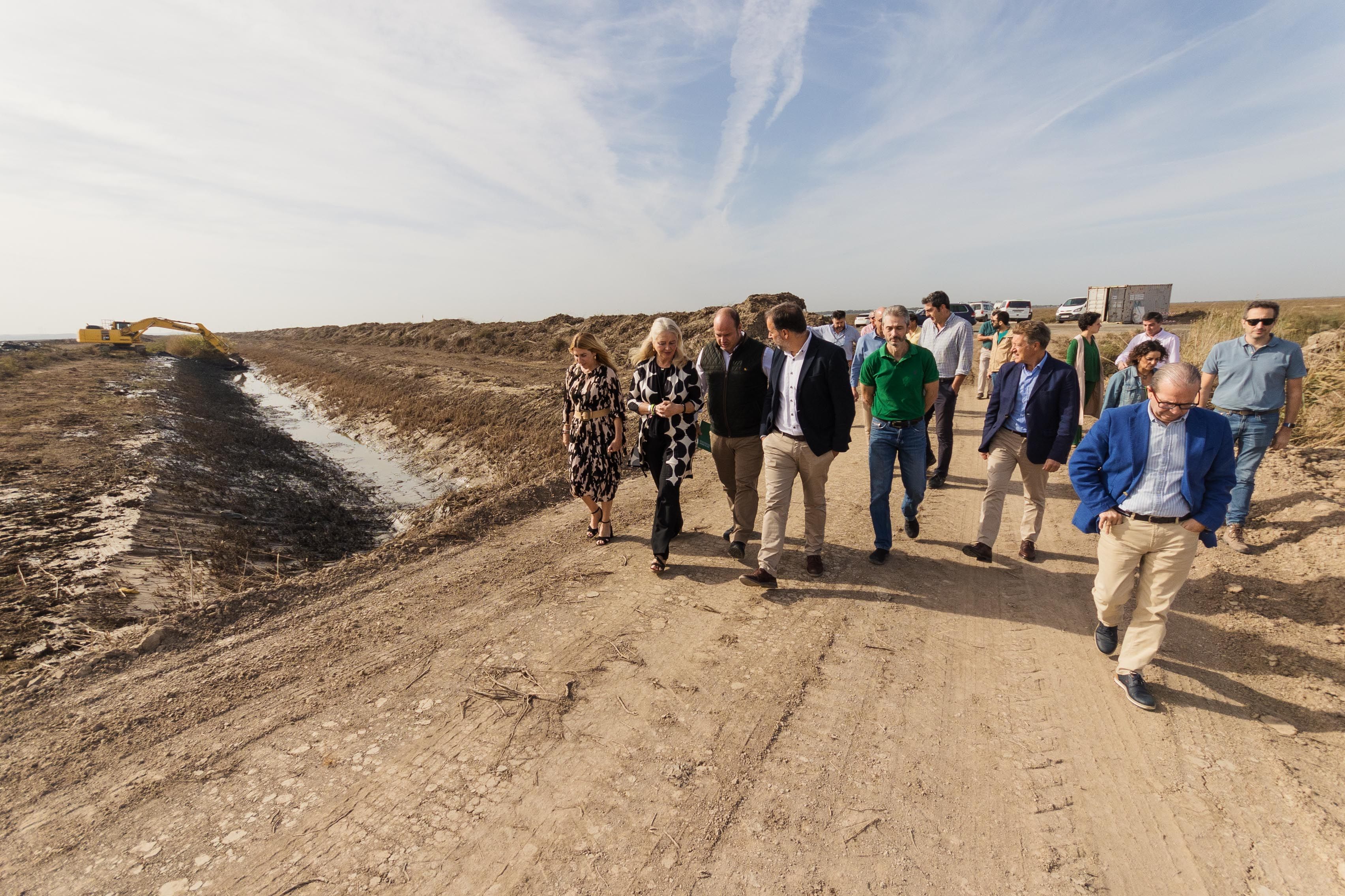 En un entorno en el que normalmente solo se escucha el canto de los pájaros o el mugir de alguna vaca de marisma, ahora hay maquinaria pesada y una docena de obreros. En las marismas de Trebujena, cerca del río Guadalquivir, se trabaja a destajo para regenerar unos humedales que llevan secos un siglo.
