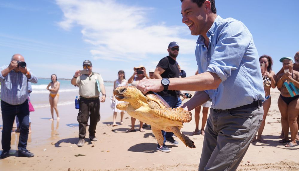 El presidente andaluz ha explicado que en 2022 con la puesta en marcha de la colaboración entre la Junta y el sector pesquero a través de este proyecto se pudieron atender a 32 de las 40 tortugas tratadas ese año.