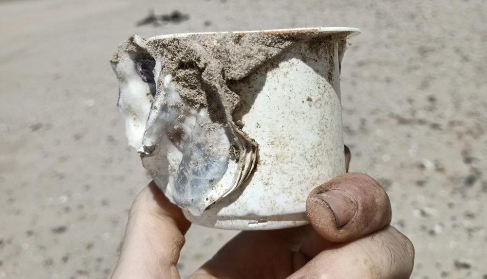 Un "ostión yogurero", "percebes en lata" o "Nike ostionera". Así ha bautizado a sus hallazgos en la arena que, acto seguido, ha despejado concienciado con la importancia de cuidar el medio ambiente. Después de recorrer unos 100 metros ha llenado unas siete bolsas más uno de los cubos de basura habilitado en los paseos de madera.