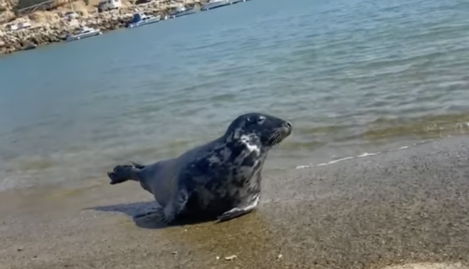 Esta foca gris (Halichoerus grypus) procede del Atlántico norte. Dentro de su comportamiento, prefieren las aguas frías y suelen visitar tierra para termorregularse. No es raro que algún ejemplar llegue a las costas de la Península. Sólo la población de Irlanda es de más de 700.000 individuos.