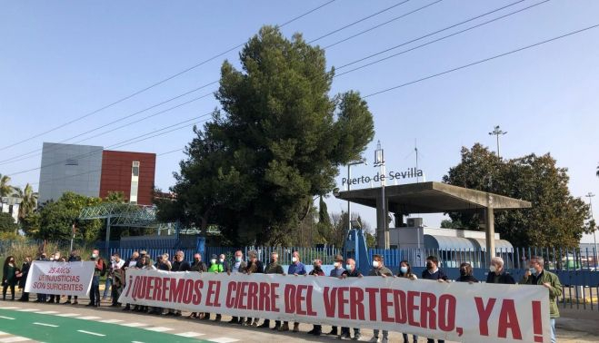 La Comisión por el Cierre del Vertedero de Nerva se ha concentrado a mediodía este lunes en el Puerto de Sevilla para exigir que Junta y Gobierno central pongan fin al traslado de desechos peligrosos. La concentración ha tenido lugar tras la inminente llegada de dos barcos cargados de residuos tóxicos procedentes de Montenegro cuyo destino es el vertedero de de la localidad onubense.