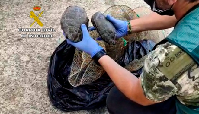 La Guardia Civil ha iniciado diligencias en Las Cabezas de San Juan, en Sevilla, sobre tres personas acusadas de varios delitos de maltrato animal y contra la fauna y la flora tras sorprenderlas transportando en un coche más de cien tortugas galápagos, una especie protegida.
