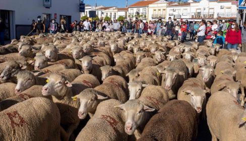 Con el toque de queda y el confinamiento sobrevolando el futuro de los andaluces, del resto de españoles y de medio mundo, ante el avance de la la Covid-19, resulta ilusionante y esperanzador ver la respuesta de la sociedad civil ante la llamada de la trashumancia y de la ganadería extensiva. Las ovejas merinas del Grupo Ovinnova (7.200 ovejas merinas de 20 explotaciones ganadera de Cordoba, Badajoz y Huelva) han regresado desde las verdes praderas montañosas de León y Palencia, hasta sus lugares de origen. En Santa Olalla del Cala, en Huelva. 350 merinas han cruzado el pueblo acompañadas por varios pastores, mastines y perros carea y centenares de personas que escoltaban al rebaño ovino, para llegar a la Dehesa de San Francisco, sede de la Fundación Monte Mediterraneo, que preside Ernestine Ludeke.