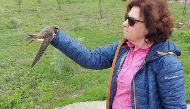 Un vecino de Cádiz avisó al grupo ecologista Agaden-Ecologistas en Acción de la presencia de un vencejo, que había caído en su terraza, el pasado 16 de marzo. Ana Sancho, una de las voluntarias, fue a recogerlo y para su sorpresa vio que se trataba de un vencejo real anillado.