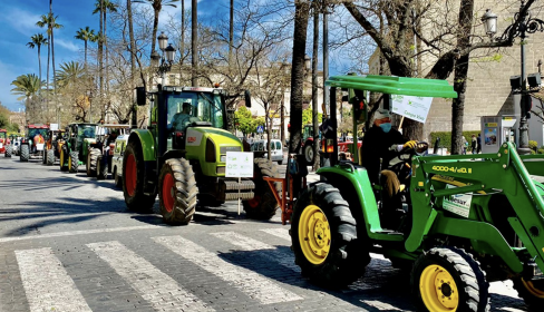 Más de un centenar de vehículos, entre tractores y turismos, se manifiestan por las calles de Jerez convocados por las organizaciones representativas del sector agrario de Cádiz —Asaja, COAG, UPA y Cooperativas Agro-alimentarias— para mostrar el rechazo del sector a la convergencia "brusca" de la PAC propuesta por el Ministerio de Agricultura y las "nefastas consecuencias" para Andalucía y muy especialmente para la provincia de Cádiz, con una actividad agraria muy diversa.