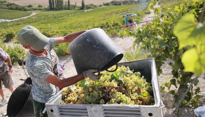 Son 65 euros lo que se paga de media por la jornada (siete horas y cuarto), lo que dice el convenio. Por las contrataciones vía ETT se paga más, claro, y tractoristas y cargadores cobran más que los vendimiadores. También hay viticultores que ofrecen algún pequeño descuento en la jornada (ese cuarto de hora) o algún incentivo, eso ya…