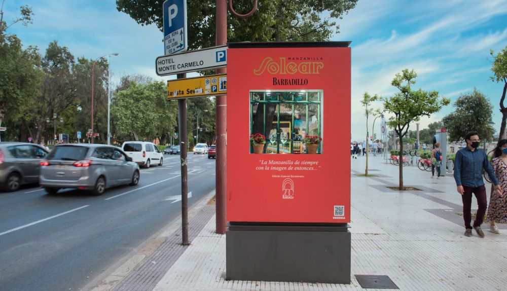 Solear Bicentenario estará presente en diferentes puntos de la capital sevillana a través de unos mupis interactivos que permiten exhibir la botella real y, a la vez, conseguir esta edición especial escaneando un código QR. Las ubicaciones de los mupis estarán en las calles Luis Montoto, junto a El Corte Inglés, Paseo de Colón, República Argentina, plaza del Altozano, o Costurero de la Reina.