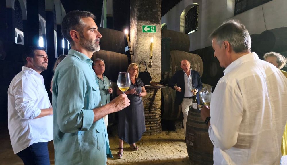 Acompañado por representantes del consejo de administración de la entidad sanluqueña encabezados por su presidente, Manuel Barbadillo, el consejero ha recorrido las oficinas y bodegas de esta empresa de reconocido prestigio internacional y gran vocación exportadora. Ramón Fernández-Pacheco ha comentado que en los cinco primeros meses de 2025, la provincia de Cádiz roza el 50% del valor y alcanza el 60% del volumen de las ventas de vino al mercado estadounidense entre enero y mayo de este año.
