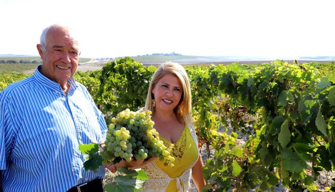 La alcaldesa de Jerez, Mamen Sánchez, ha reconocido la labor del viticultor Curro Barba durante 50 años al frente de la Viña La Blanquita en el Pago de Balbaína. Un negocio artesanal que produce mostos y vinos finos del alta calidad, reconocidos por bodegas e instituciones señeras. La alcaldesa ha realizado esta visita en el marco de la vendimia jerezana 2019, estando acompañada por los miembros de su Gobierno, Francisco Camas, Jesús Alba y Rubén Pérez, y el director general del Consejo Regulador, César Saldaña.