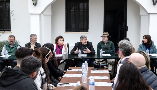 El viticultor José Manuel Bustillo, probablemente uno de los más inquietos del Marco de Jerez, convocó el pasado fin de semana una jornada en su propia finca La Zarzuela para hablar de 'vara y pulgar', el tradicional método de poda del viñedo de la comarca, que cuenta con unas 6.000 hectáreas. Unas treinta personas, entre las que estaban César Saldaña, Paz Ivison, Belén Puertas, Laura Macías, Juan Núñez, Jesús Rodríguez, José Manuel Núñez, Miguel o José Luis Mateos, acudieron a la cita y participaron en una mesa redonda que tuvo como fin último reivindicar y proteger este método de poda, que se encuentra en peligro.