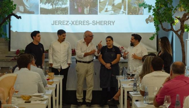 La jornada continuó en el restaurante Pedro Nolasco, ubicado en el Hotel Tío Pepe, donde los asistentes disfrutaron de una propuesta culinaria que reinterpretó los sabores tradicionales desde una perspectiva contemporánea. El broche de oro llegó por la tarde con la gran cita gastronómica de esta edición, protagonizada por Juanlu Fernández, chef del restaurante LÚ Cocina y Alma de Jerez, galardonado con dos estrellas Michelin. En una cata exclusiva, el duende jerezano fusionó la sofisticación afrancesada de su cocina con la esencia única del vino de Jerez.