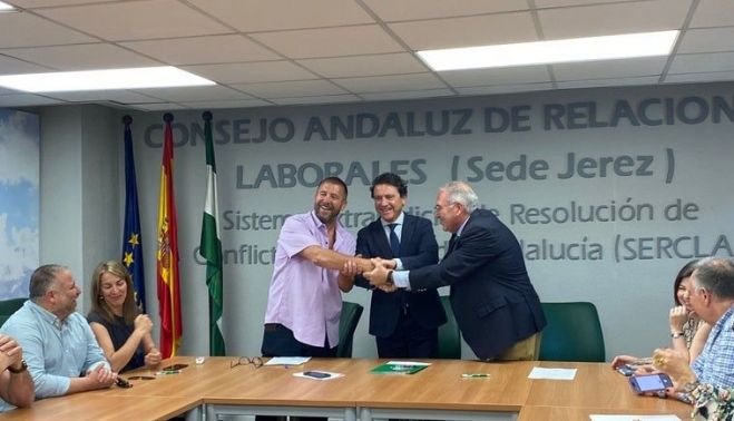 Según ha indicado la Junta de Andalucía en un comunicado, el acto ha estado presidido por el delegado territorial de Empleo, Empresa y Trabajo Autónomo, Daniel Sánchez Román, acompañado por Jorge Pascual, en representación de la patronal Fedejerez y de Jesús Serrano, representante de la organización sindical CCOO Industria, ambos firmantes del acuerdo.