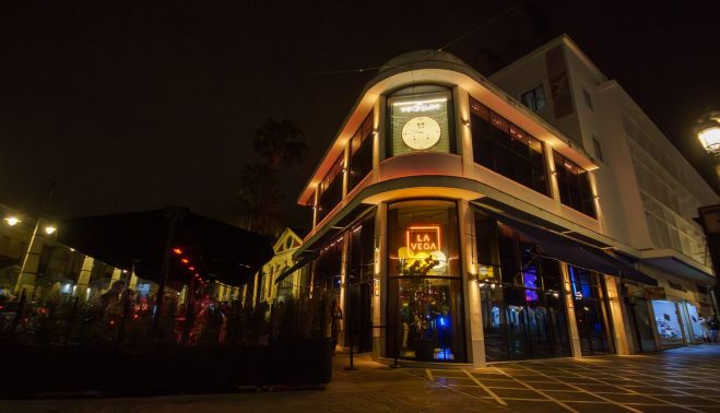 La Vega, la histórica cafetería reconvertida exclusivamente en un bar de copas por los nuevos gestores, tiene desde hace unas semanas un nuevo atractivo en su exterior: un reloj publicitario de The Macallan, la prestigiosa marca premium de whisky escocés con importantes intereses en Jerez (en empresas como Estévez, Tevasa y Vasima). Ese reloj está en perfecta sintonía con la decoración exterior del local, y es, precisamente por la noche, con la iluminación muy a la americana del local, cuando más llama la atención.