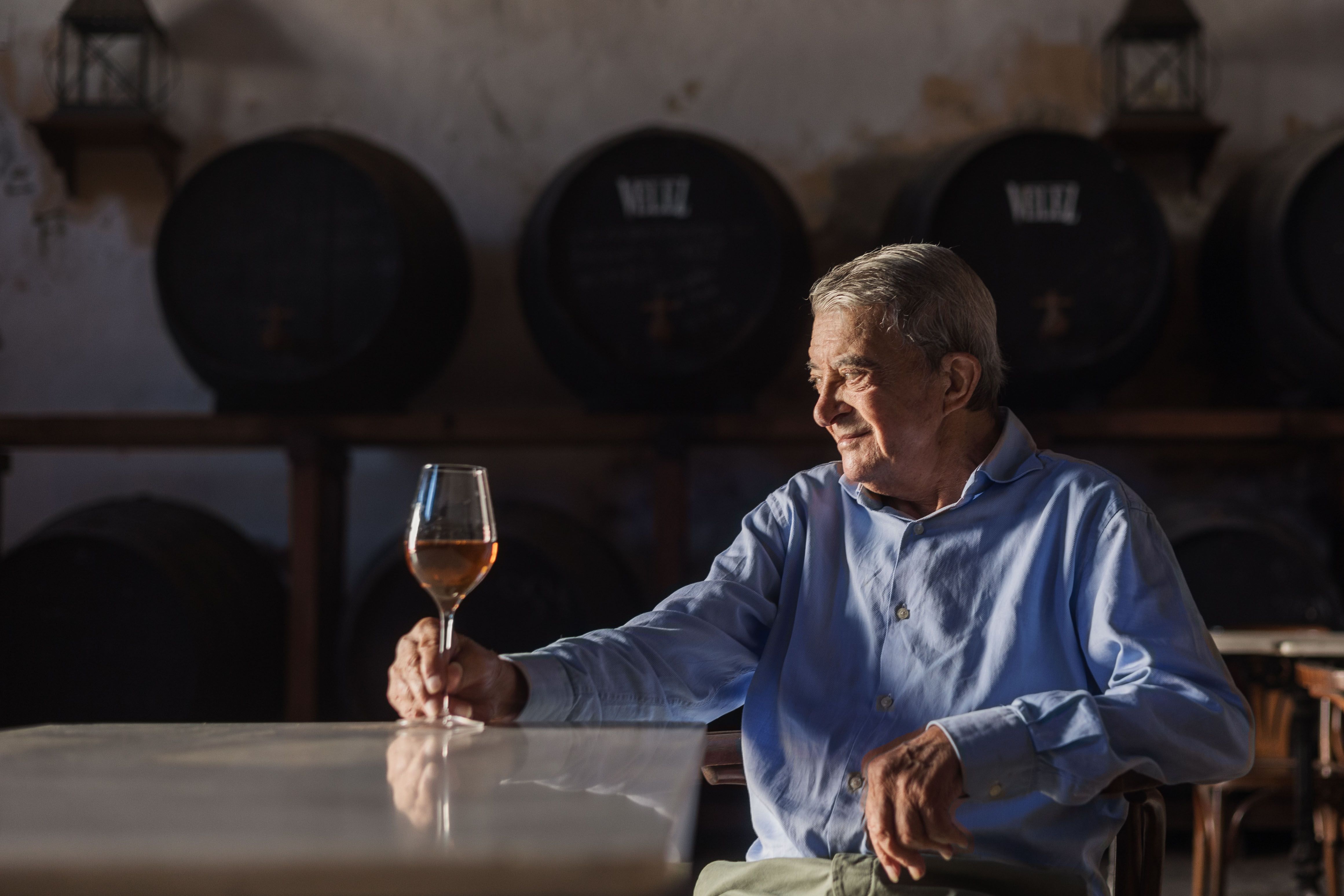 Este antiguo trabajador ya jubilado ha vivido en sus carnes la evolución de Bodegas Vélez y conoce al dedillo los entresijos de este lugar tan reconocido en la localidad. Se ha sentado junto a Juan Manuel con una copa de rebujao. Cada sorbo es un recuerdo.