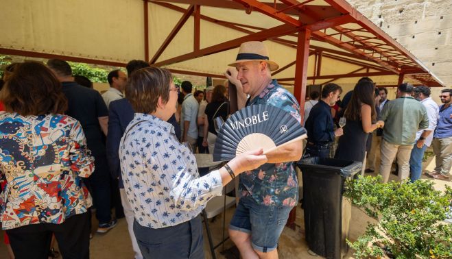 Imposible encontrar una invitación para ‘Albariza. Nuevo renacimiento’, todo lleno de 'vinoblers', así que nos quedamos sin probar los vinos que acompañan la conferencia, pero podemos charlar luego con Willy Pérez, que tiene la amabilidad de darnos unos minutos después de pasar un rato por el stand de Territorio Albariza y justo antes de ir hacia un nuevo compromiso. Pérez nos recuerda que está prácticamente listo el libro (saldrá ya en 2025 y serán varios volúmenes) que va a llevar precisamente el título de la cata-conferencia, que son una especie de memorias vinateras de lo que han sido estos quince años de trabajo, de los que han sido sus hallazgos en cuanto al vino de Jerez –los vinos sin fortificar, el inicio con los finos y la manzanilla, los vinos blancos– y de cómo, lo más importante, “hemos ido cambiando nuestras vidas en función de todo lo que hemos ido descubriendo y evolucionando con el vino… cuanto más se aprende, menos se sabe. Todo este tiempo ha servido para ser conscientes de la identidad de la tierra, de que solo somos un eslabón más, de que un 80% de Columela sigue perfectamente vigente”, dijo, rememorando por encima los temas abordados en la cata de la Mezquita. Esta es la tercera cata que ofrece Pérez en Vinoble (aunque ha colaborado en otra) y estima que, por ahora, cierra una parte de su vida en todos los ámbitos.