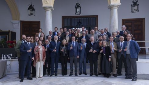 Babé explicó a Garamendi, delante de los asociados, de la prensa e invitados, cómo son las empresas del Marco de Jerez, la mayoría pymes y de origen familiar. Recordó que, en efecto, en su día en el sector hubo la presencia de grandes multinacionales, pero recalcó que, en la actualidad, solo existe la presencia de capital filipino en dos bodegas y que, en los dos casos, se trata de empresas también de origen familiar.