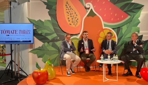 El también presidente de la Asamblea de Regiones Hortofrutícolas Europeas (AREFLH) intervino en la mesa redonda Implicaciones geopolíticas en el comercio del tomate, junto a José María Pozancos (FEPEX) y Eduardo Baamonde (Cajamar).