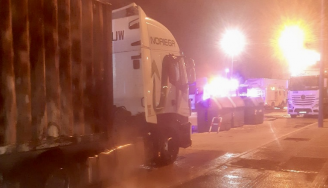“Uno estaba vacío y en el otro el incendio afectó a la carga que era de palés de aceite” según informó el Consorcio de Bomberos de Cádiz. “En ninguno de ellos estaba el conductor. Fue imposible contactar con el transportista, ni localizar una máquina para sacar la carga para llegar al foco del incendio”.