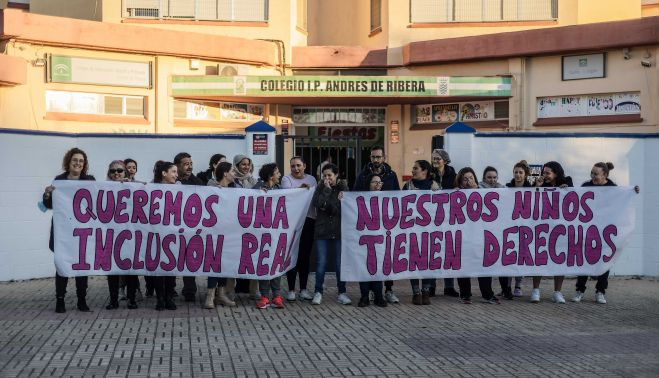 Padres y madres de alumnos con necesidades especiales del colegio Andrés de Rivera de Jerez se han concentrado en la mañana de este viernes para protestar contra la cantidad de horas del Personal Técnico de Integración Social (PTIS) dedicado a tratar con estos alumnos, algo que consideran insuficiente.