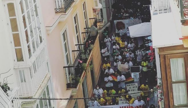 Una marea ha invadido este sábado el centro de Cádiz. En una marcha convocada por la Flampa Gades, han pedido a la Junta y al Gobierno central que cesen los recortes en la ciudad. "Detrás de cada solicitud de escolarización denegada, detrás de cada no que recibe una familia gaditana que elige la escuela pública para ver crecer a su hija o a su hijo… está esa hoja de ruta trazada en demasiados despachos para favorecer el negocio privado", señalaban en un comunicado.