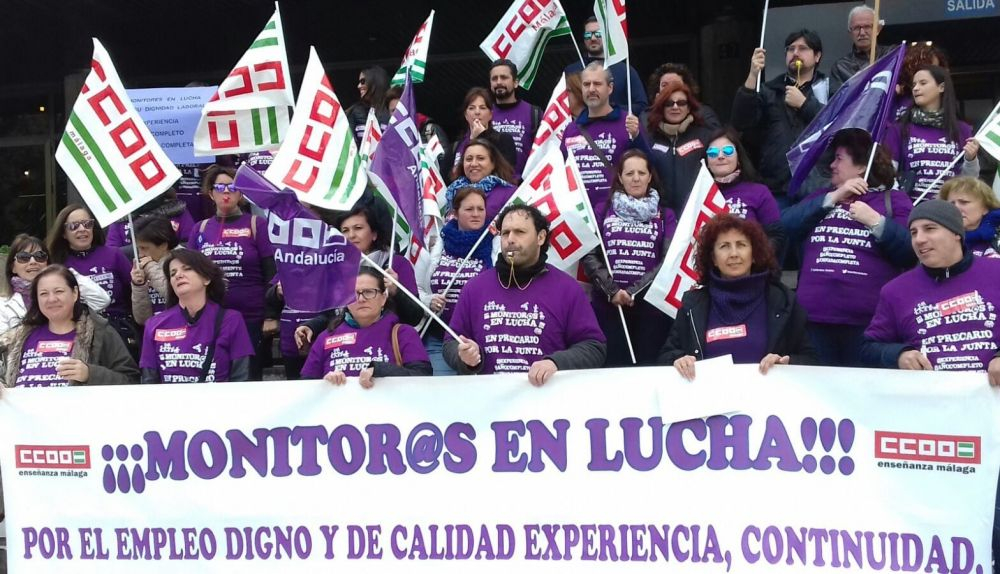 CCOO convoca paros parciales de las monitoras escolares entre el 1 y 7 de junio (ambos inclusive), de 12.00 a 13.00 horas, y huelga el día 8, en señal de protesta por el incumplimiento reiterado del acuerdo suscrito por la Junta con este colectivo para pasar de contratos parciales de 20 horas a jornada completa de 35 horas semanales.
