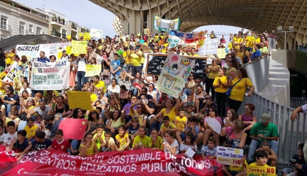 La plataforma de Ampa y familias Escuelas de Calor convoca a familias, docentes, personal docente y direcciones de centros educativos a llevar a cabo acciones de protesta "ante el flagrante incumplimiento de la Ley de Bioclimatización, vigente desde hace casi dos años".