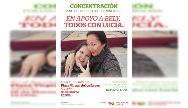 El martes 7 de marzo también se aprobó en el Pleno Municipal de Sanlúcar la Mayor una declaración institucional en apoyo de Beli y Lucía. Miles de firmas se han recogido ya en solidaridad con este caso y se ha convocado una concentración (sábado 18 de marzo a las 12 horas) a las puertas del Consistorio en apoyo de la menor.
