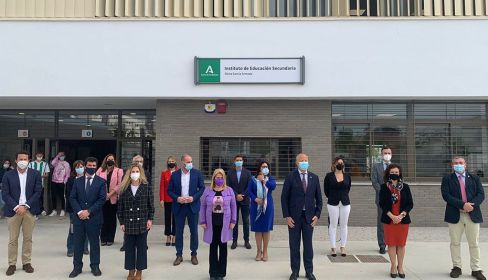 La alcaldesa, Mamen Sánchez, acompañada del consejero de Educación, Javier Imbroda, y de la primera teniente de alcaldesa, Laura Álvarez, y del delegado de Educación, Juan Antonio Cabello, ha participado, con representantes institucionales, en la inauguración del IES Elena García Armada, un acto en el que han sido protagonistas, tanto la propia científica, como la comunidad educativa del centro que dirige Rosario Coca.