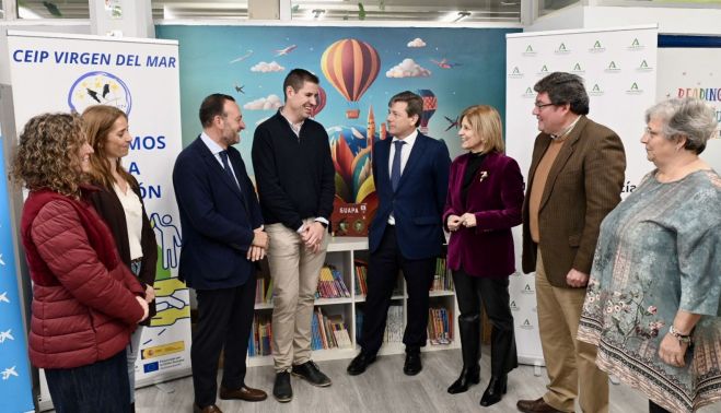 El acto, que ha tenido lugar en el centro educativo, también ha contado con la presencia de la teniente de alcaldesa de Medio Rural, Susana Sánchez; del delegado de Educación, José Ángel Aparicio, y de la delegada de alcaldía de la barriada rural de El Portal, Josefa Romero, así como representantes de la entidad financiera.