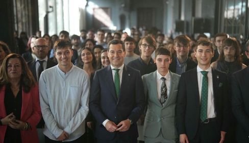 El presidente de la Junta, Juanma Moreno, presidió en el Palacio de San Telmo un acto de reconocimiento a los mejores expedientes académicos del curso 2024-25. Participaron estudiantes destacados de Bachillerato, Formación Profesional y Enseñanzas Artísticas Superiores que cursan sus estudios en centros públicos andaluces.