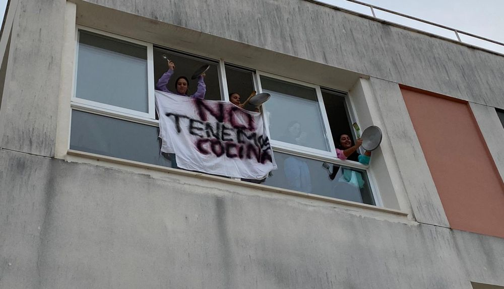 “Nuestro futuro profesional no es un juego”, versa una pancarta pegada en la fachada del IES Alminares de Arcos de la Frontera. Este martes las clases se han paralizado en el edificio donde estudiantes de 1º de Dirección de cocina tratan de formarse en el oficio sin tener acceso a la instalación donde realizarán su trabajo, los fogones.