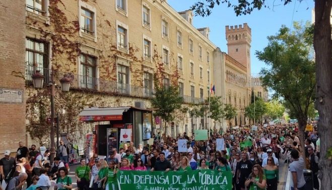 Por su parte, en Málaga, la Marea Verde ha apuntado que "son más de 1.000" las personas que han respaldado esta protesta, que al igual que en Sevilla se ha desarrollado sin incidentes y que ha finalizado en la Plaza de la Merced con la lectura de una manifiesto y los testimonios de representantes de PTIS en Lucha, Sindicato de Estudiantes y Docentes en Lucha. El coordinador general de IU Andalucía y diputado de Sumar en el Congreso, Toni Valero, ha asistido a la misma.