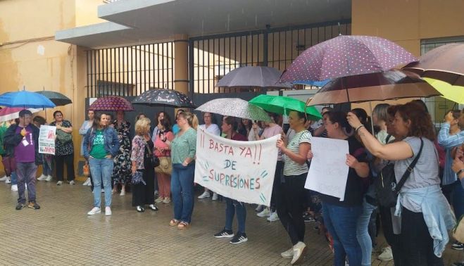 Bajo una lluvia torrencial han permanecido concentradas ante la puerta del centro, exigiendo se revierta la decisión de recortar su segunda unidad como han conseguido otras Ampas, como la del CEIP El Membrillar de Jerez, que contaban con 36 solicitudes, apenas cuatro más que ellas.