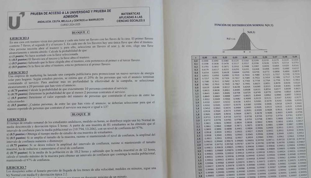 Al igual que el examen de Matemáticas de ciencias, también lleva su tabla, la función de distribución normal N(0,1).
