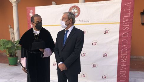 "Debo pedirle, como rector de la Universidad más longeva y más voluminosa del sistema, comprensión y amparo. Este sistema no merece la desconfianza inicial de sus gobernantes. Y no merece, aun mucho menos, que se le detraiga un montante de 135 millones de euros, de sus remanentes no afectados, que de manera clara reduce su solvencia, aumenta su incertidumbre y disminuye su estabilidad financiera. Mucho menos merece que lea en los rotativos que, de esos remanentes detraídos para atender las urgencias de la terrible pandemia, se empleen once millones de euros para sufragar las cuentas de la RTVA", expresa Miguel Ángel Castro, rector de la Universidad de Sevilla, durante su discurso pronunciado en la apertura del curso 2020/2021