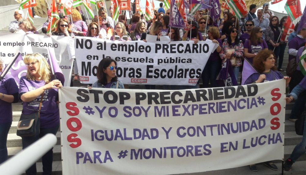 "Quedamos en esta situación unos 200 de una plantilla de 1600 de monitores escolares que son personal laboral de la Junta. Somos los que llevamos las tareas administrativas y se ha pasado mes de marzo, que es de mucha actividad por la escolarización y no se ha podido hacer a jornada completa, estamos a jornadas parciales de 20", añade.